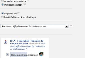 Selon vos objectifs, votre secteur d’activité, l’information/l’opération marketing que vous souhaitez mettre en avant, etc. … les Facebooks Ads permettent de vous adresser aux « bons » internautes (pour peu que vous les aillez bien ciblé en amont, bien sûr). Quelques conseils supplémentaires :- Pour ne pas vous ruiner et ne payer que pour les internautes « transformés » en fans/en visiteurs de votre site, il est préférable de choisir un paiement au coût par clic.