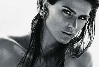 Sous l’objectif de Mario Sorrenti, la superbe brésilienne Isabeli Fontana prend la pose en bord de mer dans des ensembles associant le noir et l’or avec le cuir et la soie.
