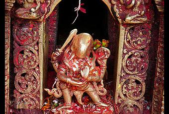 Bhairava, BhaktapurSuite à l'hymne qu'il adresse à la Déesse, Bhairava demande dans quel but tous ces héros et ces yoginīs sont venus dans ce sanctuaire de la grande terreur.La Déesse lui rétorque "Tu es le Seigneur suprême : tu es toi-même la réponse ! A quoi bon répondre ?" Pourquoi Bhairava demande t-il à la Déesse quelle est sa propre nature ? N'est-ce pas ridicule ?Quelque peu intimidé, le Grand Terrifiant avoue alors que la Déesse est sa propre conscience de soi (svavimarśabalena), elle est la connaissance que Dieu a de lui-même. C'est elle, la réponse. Sans elle, tout se passe comme si Dieu n'existait pas, comme s'il était plongé dans le coma. Même s'il était infini éternel, etc., il serait, au fond, comme une pierre, dépourvue de la moindre liberté, indifférente comme un cadavre. Ce qui fait une différence, ce n'est pas Dieu, c'est cette conscience, ce pouvoir d'émerveillement, qui fait que Dieu est Śiva ("bienfaisant") et non une simple abstraction stérile. La réponse est donc le Cœur de la Déesse, son âme, sa substance, laquelle est l'âme de Dieu. Dieu étant la moelle de tout, la Déesse est la quintessence, le "secret ultime, divin" (1, 38a). Et ce secret, c'est d'abord la Danse de Kālī (kālīkrama), c'est-à-dire la liturgie qui exprime, à travers des mantras, le cycle de la conscience, cycle de création-destruction des concepts et des percepts dans l'espace sans nom. Ce n'est ni la dualité, ni l'unité, mais la "suprême non dualité" en laquelle sont réconcilié ces deux ennemis de toujours.La Déesse répond qu'elle va lui offrir la réponse absolue, le secret proclamé dans tous les Sanctuaires, symboles du corps humain. Dans cet espace ultime, espace du corps où sont naturellement présents toutes les puissances de l'univers, a lieu à chaque instant le grand sacrifice, création et destruction, émanation et retour. "Tout cet univers est annihilé par la vérité absolue comme un brin d'herbe dans les flammes" (I, 42). Des puissances terribles sont à l'œuvre, qui se prennent pour Dieu et qui se disputent en questions et réponses interminables. "Mais en réalité, dans le cœur, incognito, se tient la Question" (I, 43). Cette question, Bhairava la pose, éternellement, au plus intime de tous les êtres, afin qu'ils puissent, dans le Temps (c'est-à-dire la mort), se délivrer du Temps. C'est le Secret, la plus grand Secret, l’Événement, l'Effroi, la Terreur qu'attendent les hommes, les animaux, les dieux, les démons, et Dieu lui-même. Le Temps dévore tous les êtres. Mais comment dévorer le Temps ? (I, 52)La solution, c'est le Cœur de la Yoginī...