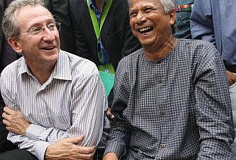 Franck Riboud, PDG de Danone, et son pote Muhammad Yunus.1,3 milliard pour les actionnaires, 200 euros par salarié