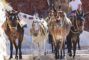 Pour accéder au port et à la petite plage d Ammoudi, vous aurez le choix d'emprunter le chemin des ânes ...Vous avez aussi un accès par route en contournant le village d'Oia mais les places parking sont plus que réduites donc il faut marcher ............Si le nombres de marches vous fait peur et bien vous pouvez moyennant quelques euros remonter avec les ânes....