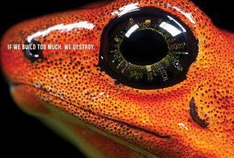 Une campagne de l'IUCN qui seulement avec les yeux d'animaux arrive à nous interpeller, le message "Si nous construisons trop, nous détruisons"