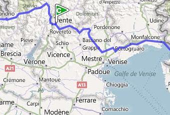 En partant depuis Lugano, puis Riva del Garda, Trente et Trieste, vous découvrirez une Italie montagnarde et champêtre où il est facile de faire du camping sauvage dans la nature. Les routes sont belles et le paysage magnifique. C’est un peu plus long mais ça vaut vraiment le détour.
