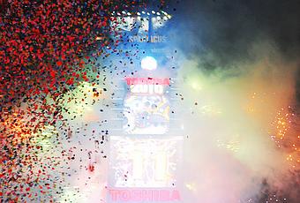 Cela dit, il vous faudra arriver plusieurs heures à l’avance si vous voulez avoir une bonne place (après 16h-18h, c’est déjà trop tard…), et ensuite vous assoir pour patienter gaiement avec le million de personnes qui a eu la même idée que vous. Restez zen car avec cette foule, il y aura forcément quelqu’un pour vous marcher sur les pieds ou vous bousculer à un moment ou à un autre, mais globalement, tout le monde est plutôt joyeux. Pour vous occuper, il vous faudra papoter, jouer aux cartes (avec des moufles) ou suivre l’émission de télévision qui est diffusée sur l’écran géant.