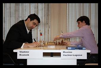 Ronde 5, Vladimir Kramnik bat Maxime Vachier-Lagrave sur une Défense Grünfeld, en 87 coups © Site officiel