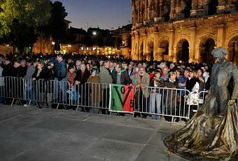Ils étaient près de 3000 ceux qui se sont réunis devant la statue de Nimeño hier à Nîmes. Des oeillets rouges y ont été déposés. Voilà qui contraste avec les vociférations et profanations d' une trentaine d'anticorridas. devant cette même statue le 18 septembre dernier.
