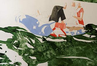 travail en cours, acrylique sur toile, 130 x 89 cm