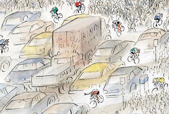 Sempé croque les aspects poétiques, absurdes ou simplement banals de la vie quotidienne.