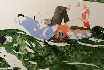 travail en cours, acrylique sur toile, 130 x 89 cm