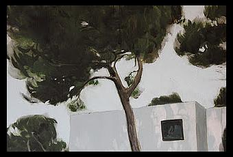Je ne sais pas si on doit dire série (série induit l’idée d’un enchainement, d’une suite) ; plutôt une répétition qui ressemble à un épuisement. Une sorte de sur-place. Il ne s’agit pas tant de variations (comme l’on s’attacherait aux variations de points de vue ou aux variations de la lumière dans le temps), mais d’une attention renouvelée à une seule et même chose : comment le monde fait image sous le regard. Ou une tentative d’épuisement qui ressemblerait parfois à combler une brèche dans laquelle le visible fuit s’il n’est pas saisi. La phrase immense de Benjamin s’appuyant sur Dante : « image du passé qui s’évanouit avec chaque présent qui n’a pas su se reconnaître visé par elle ». « Comment le monde fait image », « faire-face » du monde que le tableau donne à voir parce qu’il en restitue l’expérience. Chaque fois tenter de saisir ce moment où les choses s’assemblent en une image, surprendre la formation d’une image en soi, le moment où l’image prend forme tandis que déjà elle échappe. Dans l’élaboration du tableau il y a ce « chercher à voir », dans sa constitution progressive et difficile parfois, cette levée du regard dans l’image. Bientôt il ne s’agit plus que de rendre cette excessive évidence et l’aveuglement simultané dont elle est la cause. L’hésitation de chaque partie à se fondre dans l’indéterminé ou à se détacher du reste. L’image dans sa compacité même semble au bord de la dissolution. Car ce qui s’approche dans chaque image, c’est l’expression d’un lointain, aussi proche soit-il. D’un inatteignable. Comme l’image de l’horizon se forme à distance. C’est le regard se décollant du monde pour voir l’image, comme décoller la main du plâtre révèle l’empreinte sinon demeurée dans la nuit du contact.