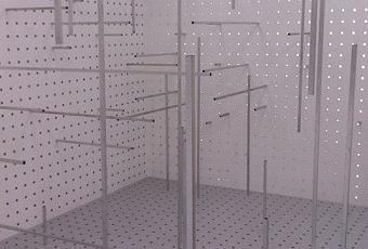 Donc imaginez un grand cube d'aluminium blanc percé de milliers de petits trous réguliers; par chaque trou, la lumière entre dans l’espace et, par chaque trou, on peut, de l'extérieur, regarder l'intérieur. Si, au lieu d’observer depuis l’extérieur, vous pénétrez précautionneusement dans le cube, vous devez naviguer entre un grand nombre de tubes plus ou moins longs qui émergent des parois, du sol et du plafond; ils entravent vos déplacements, vous devez les contourner, vous faufiler entre eux, non sans danger de vous cogner, de trébucher, voire de vous éborgner. C’est un peu une version édulcorée de la Vierge de fer, cet instrument de torture médiéval où on enfermait apostats et adultères. Il y a bien, au centre, un endroit où l’on est en sûreté, un œil du cyclone, mais vouloir explorer le reste de l’espace nous met aussitôt en danger. Les tubes sont comme des tubes endoscopiques, faits pour voir à l'intérieur du corps. Etant à l'intérieur, vous pouvez aussi inverser la relation voyeur/vu et coller votre oeil à l’extrémité d’un tube pour regarder le monde extérieur. La lumière pixelisée se diffracte par tous ces orifices. On est désorienté, mais pas sans repères, car ce sont ici les repères mêmes qui nous trompent, nous déroutent. C'est une installation à la mesure de notre corps, faite pour qu’on en expérimente tous les recoins, toutes les contorsions. C'est pour moi la pièce la plus emblématique du travail de Gormley.