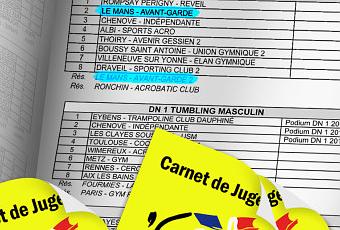 Le week-end passé, nos 3 candidats à la formation Juge Tumbling ont passé et réussi leur examen. David Ferrand obtient le Juge N1, Bruno Morin et Romuald Abadie, le Juge N2 ! Un grand bravo à nos 3 nouveaux juges qui ont longuement étudié le code de pointage pour se préparer !