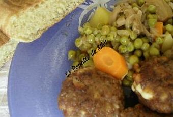 (j'ai modifier la recette un tout petit peu , j'ai mis la moitié d'huile et 1 portion de vache qui rit aussi mélanger a la viande ,et j'ai enrober mes boulettes de farine avant de les cuire )