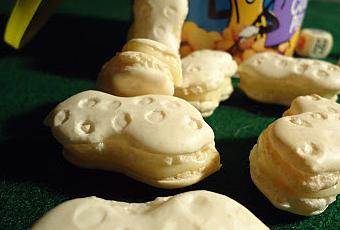 Des macarons "peanuts" pour les soirées en famille. Avec leur allure d'arachide, ils se laissent grignoter sans efforts.Les coques de ces macarons sont faits de poudre d'arachides plutôt que de poudre d'amandes, pour un parfum de noix plus prononcé. Ils sont garnis d'une ganache au chocolat blanc.