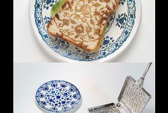 La première, laisser des traces de dentelle sur son toast ou sandwich avec l'archi traditionnel "toast pan" à l'américaine, dessiné par Minale Maeda en 2006 (qui a également dessiné l'assiette assortie aux des motifs de Delft.