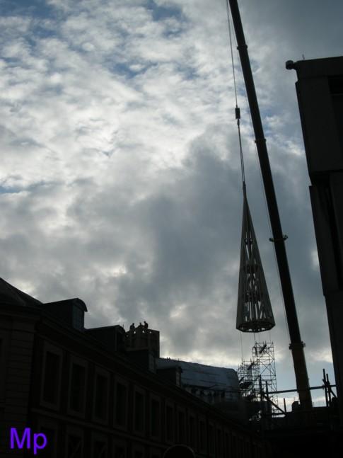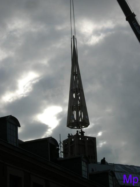 Cet ajout d'une tour de guet, surmontée d'une "Guette", a été décidé par les architectes des Monuments Historiques. C'est avec une grue de 300 tonnes, munie d'un bras télescopique, que ce travail a été réalisé.