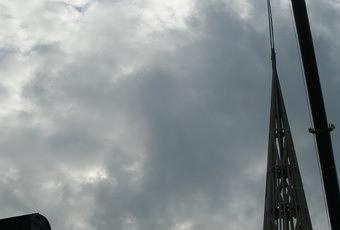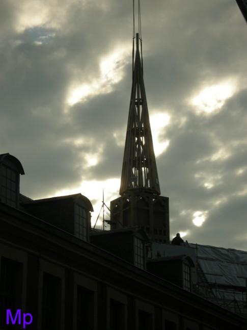 Cet ajout d'une tour de guet, surmontée d'une "Guette", a été décidé par les architectes des Monuments Historiques. C'est avec une grue de 300 tonnes, munie d'un bras télescopique, que ce travail a été réalisé.