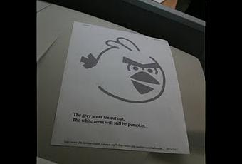 Des instructions pour faire une pumpkin Angry Bird. Ah ben il y en a qui sont moins occupés que d’autres parce que moi j’imprimais un tableau ultra compliqué sur lequel j’ai perdu au moins 3 indices de vue et des dizaines d’heures de sommeil. Mais revenons à nos