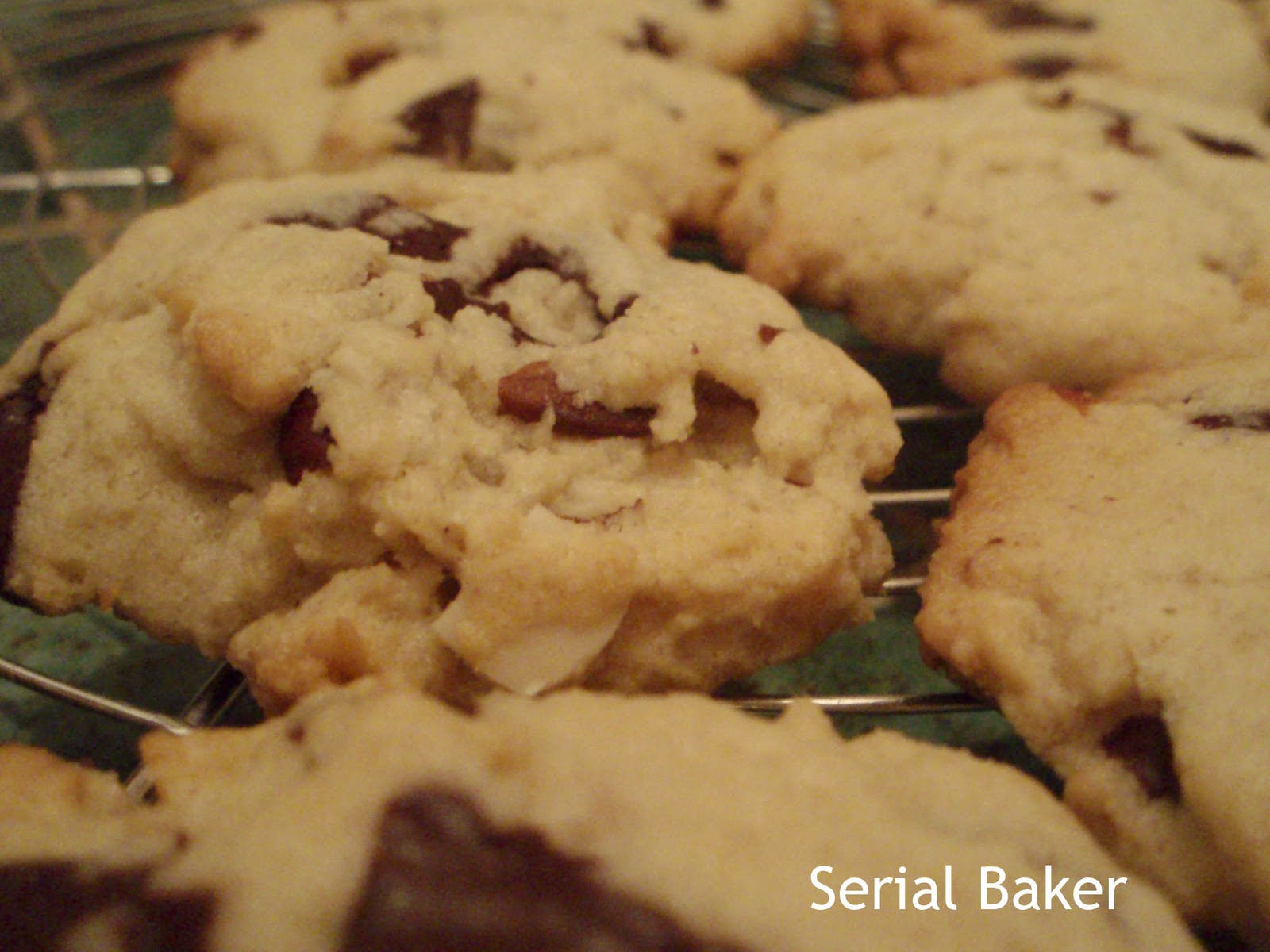 Battre le beurre ramolli et le sucre en crème, ajouter la purée d'amandes. Ajouter ensuite l'oeuf et la vanille. Ajouter la farine et la levure. La préparation doit être homogène. Incorporer enfin les pépites de chocolat et les amandes. Déposer des petits tas de pâte sur une plaque de cuisson ou du papier sulfurisé. Cuire au four (th6/180°C) pendant 10-12 minutes. Les cookies sont encore mous à la sortie du four Laisser refroidir les cookies sur une grille. Ils durciront en refroidissant.