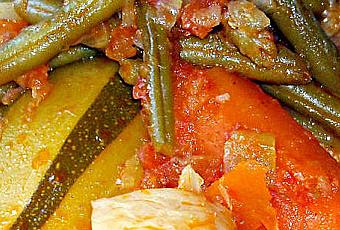 mouiller avec l’eau. A ébullition,ajouter les pois chiches , les légumes préalablement nettoyer et découper, et le coulis de tomate. Laisser cuire à couvert jusqu’à cuisson du poulet ,les légumes
