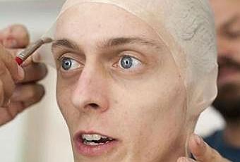 Ce montage est vraiment tiré du make up de la série The Walking Dead puisqu’il s’agit de l’acteur Kevin Galbraith en pleine séance. C’est vraiment de l’artisanat pour ce qui est de la mise en oeuvre. A tel point que les maquilleurs affirment que la même personne assise 10 fois sur le siège repartira à chaque fois avec une allure différente.