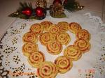 Travailler la farine et le beurre. Ajouter le sel , le poivre et les jaunes d'oeufs. Etendre la pâte sur un rectangle de 30 cm sur 40 cm et parsemer de fromage et de mortadelle. Enrouler la pâte sur elle même. Réfrigérer pendant 30 mn. Couper des rondelles de 1 cm d'épaisseur.