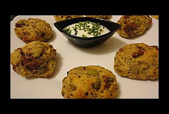 Incorporer tous les ingrédients préalablement coupés et bien mélanger. Former des petits cookies que l'on enfournera 10 minutes à 200°C dans un four préchauffé.