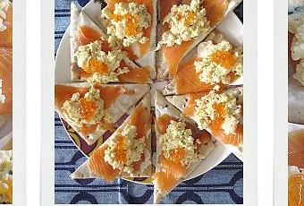 Étalez une couche généreuse de Saint Morêz, rajoutez une tranche de saumon, puis les œufs brouillés.