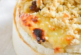 Camembert au four et son crumble aux fruits secs Préparation:10min Cuisson: 25min Pour 4 personnes *** Ingrédients: 1 camembert de Normandie (au lait cru)