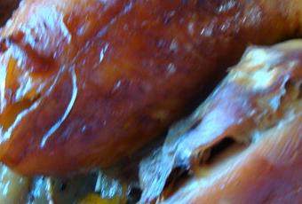 Au bout de 1h 15 de cuisson, les morceaux de poulet sont tendres et trés dorés.
