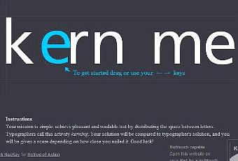 Kern Type est un jeu typographique en ligne, basé sur l’approche des lettres (c’est-à-dire l’espacement qui les sépare). En 10 étapes, correspondant à autant de typographies différentes, l’internaute aura à repositionner latéralement les lettres qui composent différents mots.