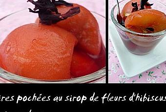 Filtrez le sirop de fleurs d'hibiscus et versez le sur les poires. Le liquide doit recouvrir vos fruits, veillez donc à ne pas prendre un plat trop large.