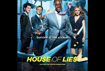 House of Lies : Voici le poster de cette nouvelle comédie avec Don Cheadle, Kristen Bell & Ben Schwartz, et je dois dire qu’il me plaît beaucoup, le coup des requins en arrière plan donne du tonnerre!