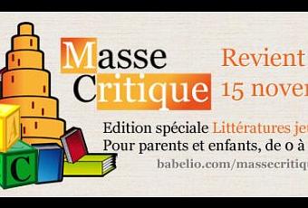 Pour cette opération de Masse Critique, nous vous invitions à contribuer autour de la la littérature jeunesse. Bien que tout le monde ait sa chance, vous pouvez avoir une opportunité supplémentaire de recevoir un titre, en contribuant à l’univers jeunesse sur Babelio :