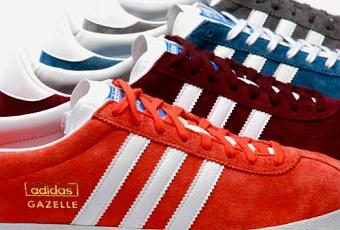 Les classiques adidas Gazelle, introduites pour la première fois en 1968, sont disponibles en quatre coloris: orange, bordeaux, bleu et gris pour cet automne/hiver 2011.