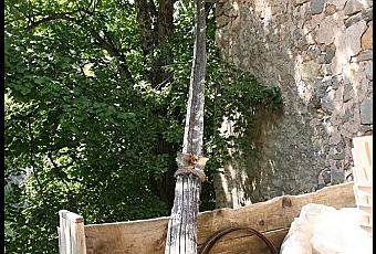 Pourtant ces derniers ne sont pas récents..., en atteste celui-ci, creusé à même dans une grande branche, qui coure du toit au puits. Il doit être âgé de 100 / 150 ans...