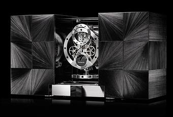 Il indique imperturbablement le passage des heures et des minutes, sans jamais requérir un approvisionnement externe en énergie. Depuis plusieurs années, la Manufacture associe ce prodige mécanique à des créations réalisées par des artisans d’art et des artistes contemporains. En 2011, l’Atmos célèbre la Marqueterie Paille, une technique de décoration ancestrale remise à l’honneur par les architectes d’intérieur au cours des années 1930. Le cabinet transparent de l’Atmos Marqueterie Paille apparaît comme par enchantement à l’ouverture d’un coffret délicatement incrusté de brins de paille. Ce modèle exclusif, qui affiche également le mois et la phase de lune, sera édité dans une série strictement limitée de 28 exemplaires.