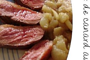 4) Couper les magrets en tranches et les servir avec la compote de poires