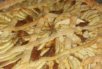 Epluchez et coupez en lamelles vos pommes que vous installées sur la tarte , avec le reste de pâte vous décorer votre pâte , sucrez-la à nouveau et éparpillez dessus des petits morceaux de beurre et glissez-la dans le four pour 45min.