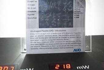 AU Optronics dont les écrans SiPix sont utilisés par des readers tels que le FnacBook, l’Oyo où encore le Cybook Orizon a présenté lors du FDP International 2011 un écran e-paper flexible doté d’une batterie souple et de capteurs photovoltaïques.
