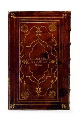 Il s’agissait de la seconde édition aldine (Venise, 1521),“Institutionum Oratoriarum libri XII..” de Quintilien. L’intérêt des enchérisseur était aiguillonné par la reliure de ce livre, sortie des mains de Jean Picard vers 1543-1546, à la commande de Jean Grolier. Ce volume, en veau, de format in-8 (papier 134 x 220 mm) au décor géométrique d’entrelacs dorés délimitant des réserves rondes occupées par des fleurons dorés en écoinçons, porte au centre du premier plat le titre doré et au centre du second plat la devise “ Portio mea, domine, sit in terra viventium” du bibliophile. Bien sûr, le premier plat porte en queue le supra libris doré célèbre “Io. Grolierii et amicorum”. L’état de la reliure laisse cependant un peu à désirer, mors fendus, coiffes arasées, coins émoussés, “cuir du dos sec et légèrement racorni”. L’estimation imprimée était de 15 000 à 20 000 euros. Premier émoi, la mise à prix est de 20 000 euros. (Mes amis s’attristeront de savoir que je n’étais déjà plus sur les rang de toutes façons; la lecture des notices de catalogue garde ceci de plaisant que l’estimation est toujours à la fin). Mais les amis de Grolier, eux, sont nombreux et convaincus; le marteau tombe sur l’enchère de 72 000 euros aggravée de 17,642 % de frais...Le chroniqueur de la Gazette Drouot semble un peu perdu devant ce résultat et laisse à penser que la rareté de l’édition prime sur l’origine de la reliure. Il est trop évident que l’acheteur s’est enthousiasmé pour la reliure et sa provenance. Rappelons que Grolier (1479-1565), trésorier général du roi de France à Milan, puis trésorier de l’extraordinaire des guerres, officier et proche collaborateur du Grand Maître Anne de Montmorency, dont il surveille la construction de ses châteaux et administre les finances, amateur d’art, constitua une bibliothèque célèbre. En fait trois bibliothèques successives, les deux premières seront dispersées après des revers de fortunes (on en connaît subsistant aujourd’hui respectivement 27 et 25 volumes). Jean Grolier reconstitua sa bibliothèque après 1538, confiant ses travaux de reliures aux maîtres parisiens.Qu’en est-il de la rareté? Quelques 450 volumes de cette dernière bibliothèque, qui en comptait peut-être 3000, sont parvenus jusqu’à nous. Parmi ceux-ci les ouvrages en français sont très rares.Les bibliothèques publiques et les institution comptent donc de nombreuses reliures "de" Grolier qui sont régulièrement exposées. De mémoire, la bibliothèque de Mariemont en possède une, la bibliothèque Municipale de Versailles deux comme celle de Nancy et celle de Vesoul qui en a découvert deux dans ses réserves il y a peu d’années. La bibliothèque du Château de Chantilly conserve une quinzaine de reliures Grolier dont une Bible de Robert Estienne offerte par Grolier à Christophe de Thou. La bibliothèque Mazarine est un peu moins riche... La Wittockiana malgré ses réorientations conserve encore quelques reliures Grolier invendues.En fréquentant les ventes récentes, il était aussi "possible" de faire son marché.