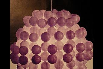 En 1970, l'éditeur J. Lüber (CH) sort la série de Kuggel-Lampen de Verner Panton, et fait imprimer pour l'occasion une affiche illustrant une de ces improbables Wonderlamps. Particularité de cette affiche, sa découpe inférieure suit le pourtour des boules, traduisant cette impression de volume tout en rondeurs ... un objet de collection exclusif !Prix : 220.-