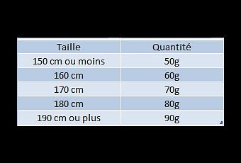 Viande : Taille en centimètre converti en gramme (pesée crue)