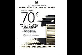 - 70 euros remboursés sur la gamme Nespresso System (seulement 50 euros sur la gamme Essenza)
