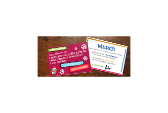 Ah oui, j’oubliais ! Dans vos colis, en plus des traditionnels carambars qui ont visiblement beaucoup de succès, vous trouverez jusqu’à Noël sur mes nouveaux coupons “MERCI” un petit code de réduction de 10% pour faire plaisir à vos proches. Et cette promo s’applique également sur les chèques cadeaux. C’est mon petit clin d’oeil festif à mes clients fidèles…