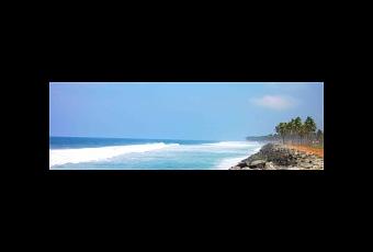 la connexion avec le soleil et la lune (les jours de pleine lune, le coucher de lune coïncidait avec le lever du soleil, énergie est-ouest, la plage plein axe sud-nord. Toutes ces polarités donnaient à la plage du temple le jouxtant (le temple de Janardhana, on l'apprendrait plus tard , était déjà au même endroit, il y a plus de 2000 ans!) sa puissance mystique. Toutes ces femmes nous entrainèrent vers la plage. Harry , notre hôte, nous dit que le petit déjeuner serait prêt lors de notre retour de notre ballade. A l’entrée de la plage de sable d'une étrange combinaison de couleur blanche rouge et noire, de nombreux Brahmanes(prêtre indou de la haute caste)officiaient des punjas. Les veuves attendaient sagement leur tour. Nous traversions le ru et là, un éléphant prenait son bain. Saraswati l’éléphante(plus tard elle serait notre voisine) du temple comme chaque temple du Kérala en « possède » un ou une ! Nous avancions sur la plage sous les grandes falaises. Nous allions vers le fond de la baie. Des pêcheurs (des musulmans, Varkala est peuplé des trois communautés monothéistes qui vivent en harmonie, il faut le signaler) réparaient leurs filets ou pour certains s’apprêtaient à assembler les trois troncs de Balsa formant leur embarcation pour partir en mer, une pêche de poissons côtiers, crustacés et de mollusques. Plus loin, nous découvrions les sources tombant en cascade sur la plage. De nombreux hommes se lavaient , remplissaient aussi des bouteilles de cette eau sortie de la roche , d'ailleurs nous ne boiront que de cette eau minérale pendant toutes les années où sommes rester à Varkala. Pourquoi s'en priver ? minérale et dotée de facultés thérapeutiques ,lesquelles , je ne l'ai jamais vraiment su mais une chose est sur , elle est toujours très bonnes à boire, et ne nous ne sommes jamais tombes malades! La mer était d'huile le matin, l'envie de se baigner et nager étant plus forte, on se jeta à l'eau. Devant la plage, une sorte de petit bras de mer avec très peu de profondeur longeait la plage, puis à trente mètres , une cassure, une barrière, avec, nous le verrions au fil du temps, suivant les époques, des rouleaux plus ou moins énormes s'écrasant au sol ! L'eau était bonne et l'envie de jouer dans la vague fut plus forte. Je pris quelques claques , le flux m’écrasant sur le sable. Nous étions seules dans l'eau et de surcroit j’étais vraiment seul dans la vague, ma compagne n’étant pas la sœur de « l'homme de l’Atlantide ». Le bonheur ! Les indiens qui se lavaient me prirent pour un « fada » et quelques uns me prièrent de revenir. Je le fis , pour une première rencontre, il était mieux d’écouter les avis des locaux qui se lavaient sous la cascade le matin , ce fut aussi un bon moyen de faire connaissance. Lorsque nous nous installerions tous les hivers, nous nagerions alors avec les mêmes qui se risqueraient petit à petit à braver la vague. Après cette toute première baignade, je décidais d'aller à la source, au milieu de ces hommes robustes comme le sont les kéralais, et tout de suite, les « mecs » me firent une place et même, me passèrent du savon ; le lien était fait ! Ils me posèrent des questions et tout de suite je sentais que j’étais le bienvenu. Ma compagne aurait bien aimé participer mais en Inde en 1992 et encore aujourd'hui certaines choses permises aux hommes ne le sont pas pour les femmes (l'Inde n'est pas exception, n'est-ce pas mesdames ?). Propres et détendus, nous revinrent et la chaleur pesait déjà son poids, le soleil commençait à apparaître au dessus des cocotiers. A la maison , Harry nous accueillit et