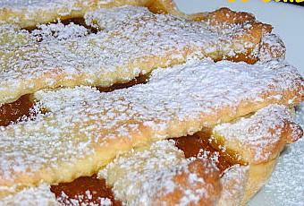 Décorer de bandelettes de pâte sablée déposées en croisillons et presser les extrémité sur le bord des tartelettes.