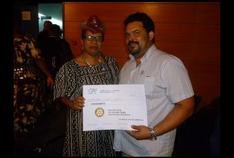 Certains fauteuils de la Salle Robert LOISON sont un peu écornés... Ce vendredi 5 novembre la technique n'était pas au Top, ni au rendez-vous, ni pour le micro baladeur, ni pour les images, ni pour l'éclairage, ni pour l'accueil... mais il importe peu !... l'essentiel aura été ce chèque de 1 000 Euros que le Rotary Club de Saint-François en la persone de sa Présidente Madame Marie-Thérèse PICARD aura remis au trésorier du Réseau Diabète Jean-Philippe HALLEY Podologie.
