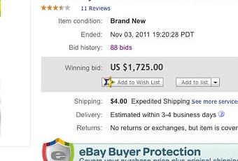 Nous avons tous un jour par passion explosé notre budget sur un caprice matériel,mais quand je suis tombé sur cet article j’en suis resté bouche B comme on dis. Un vendeur sur Ebay a posté une annonce aux enchères de Modern Warfare 3 (version Xbox 360) cinq jours avant sa sortie et l’enchère est arrivé au montant irréelle pour un soft de 1725$ !! J’imagine la joie du vendeur… Et vous,seriez vous capable d’aller jusqu’à une telle somme pour jouer à peine une semaine avant les autres ?