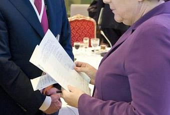 Parfois, une image vaut cent mots. En voici une qui capture le moment exact où la Grèce, incarnée par Papandréou, a plié devant l’autorité européenne, et allemande ici. La gestuelle en dit long.